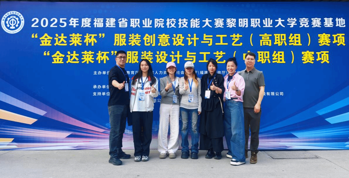 3月25日至27日,我校代表队以“技能+展示讲解”双赛道综合得分第二的成绩斩获一等奖。选手刘灿、丘金玲在童振辉和许奕春老师的指导下,在6小时内完成设计、制版到成衣制作全流程,并围绕创意核心进行现场讲解,最终以工艺精度与创新理念赢得评委高度评价。