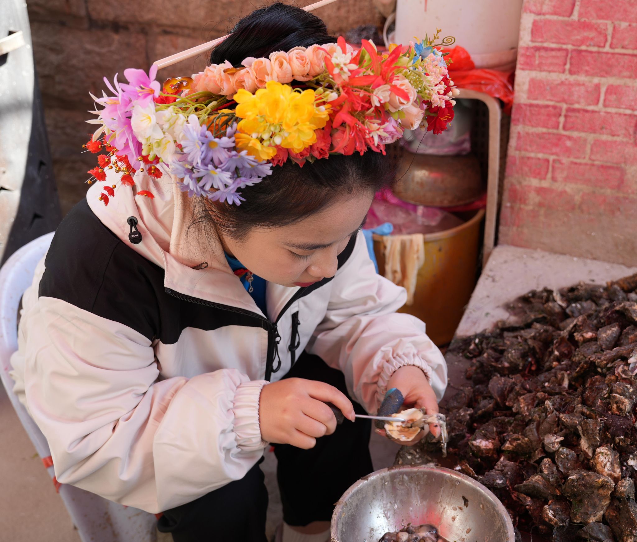 1月16日,在蟳埔村,队员们通过访谈深入了解了蟳埔女的日常,并与蟳埔民俗文化村保护提升指挥部工作人员针对福建三大渔女中的蟳埔女开展座谈会。还亲身体验“蟳埔女”头饰与服饰,同时参与挖海蛎等传统劳作,感受渔民生活的艰辛与乐趣。