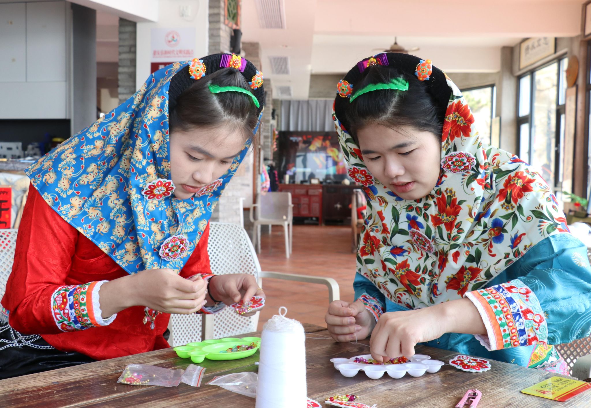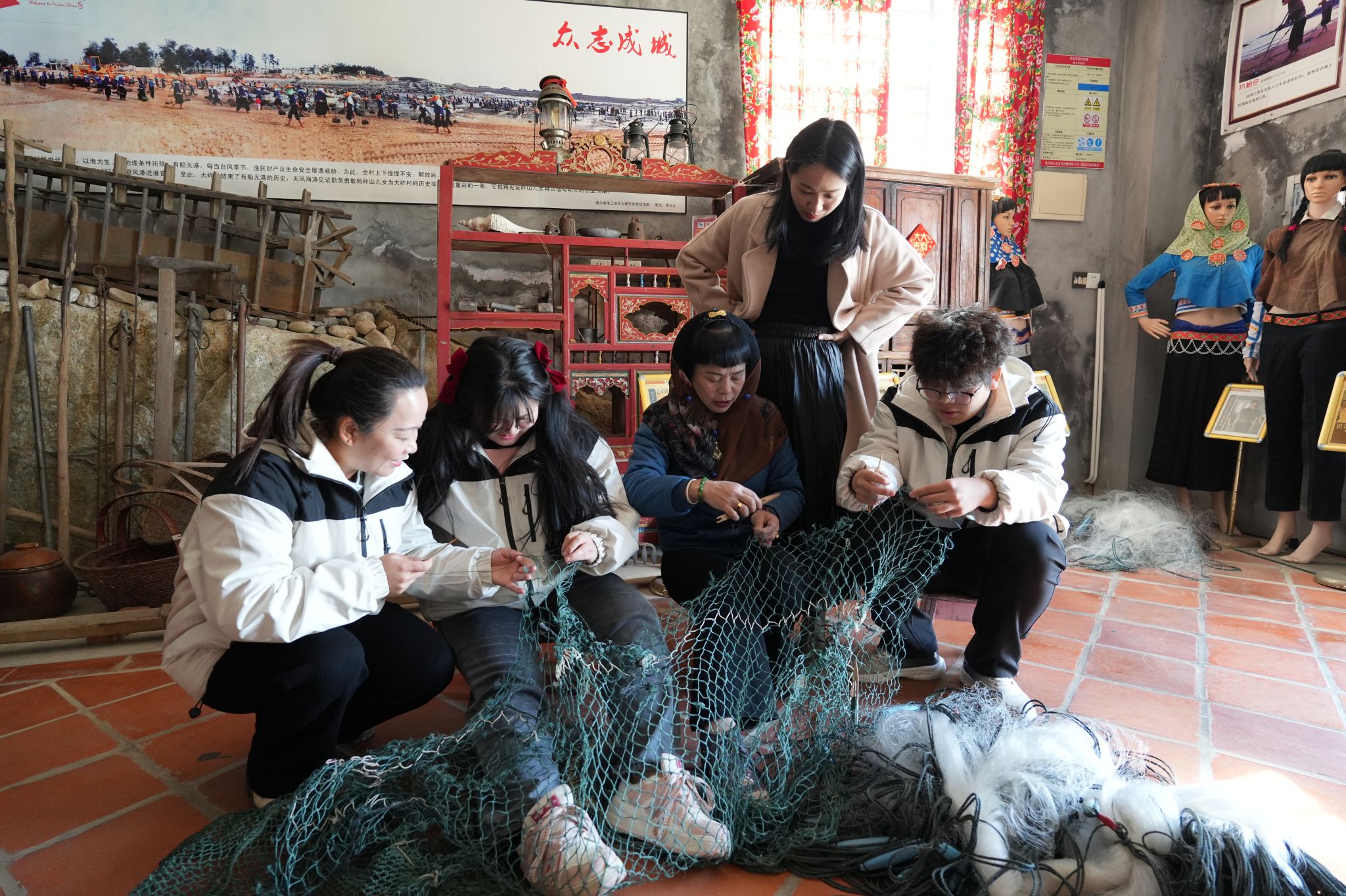 1月17日,队员们来到惠安崇武镇,在惠女风情园,队员换上惠女服饰,参与织渔网、制作手工绣花胸针,领略惠安女的勤劳智慧以及海洋文化对民俗生活的深远影响。