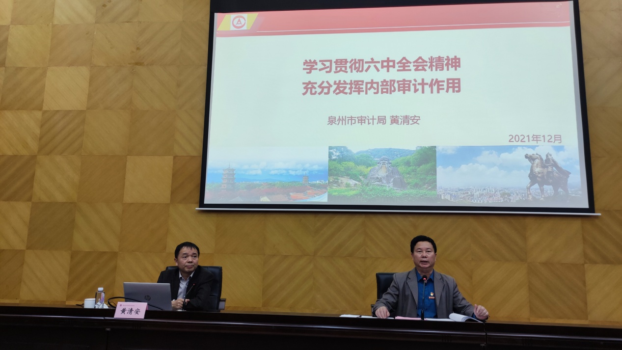 12月8日下午,我院邀请泉州市审计局黄清安副局长作题为《学习贯彻六中全会精神充分发挥内部审计作用》的专题讲座。学院党委副书记、院长黄敬前,党委副书记陈金通,党委委员、慈山分院院长柯艺灿,党委委员、副院长沈永希、张庆武,副科级以上干部,党政办...