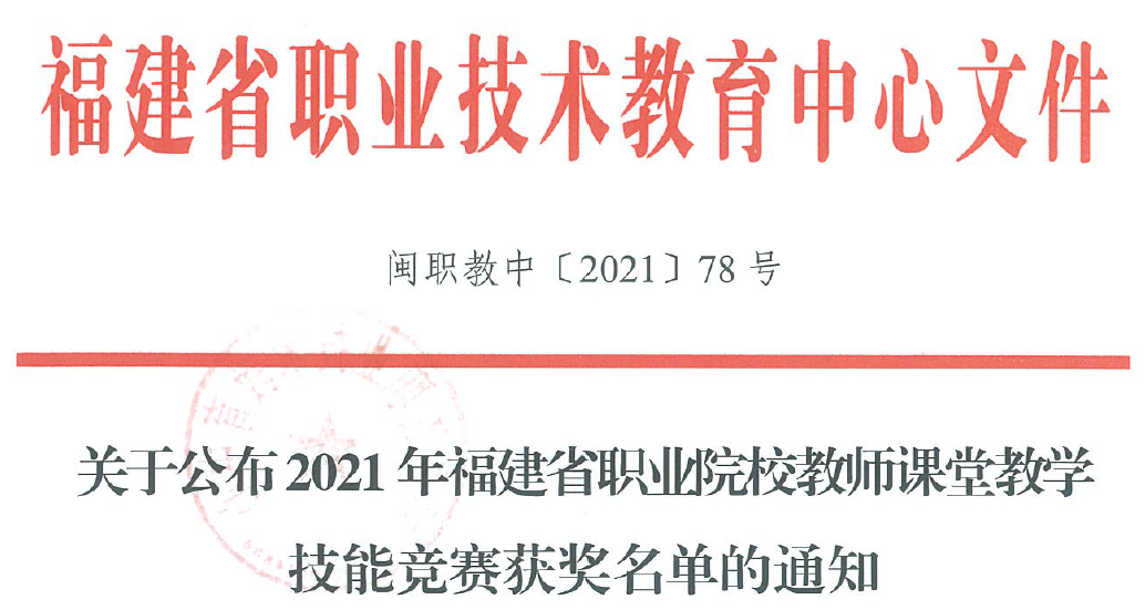 12月初,福建省职业院校教师课堂教学技能竞赛落下帷幕,我院选派的3位参赛教师在比赛中表现突出,蔡旋迎获二等奖,戴斯娜、朱小琴获三等奖。(教务处 叶茂樟