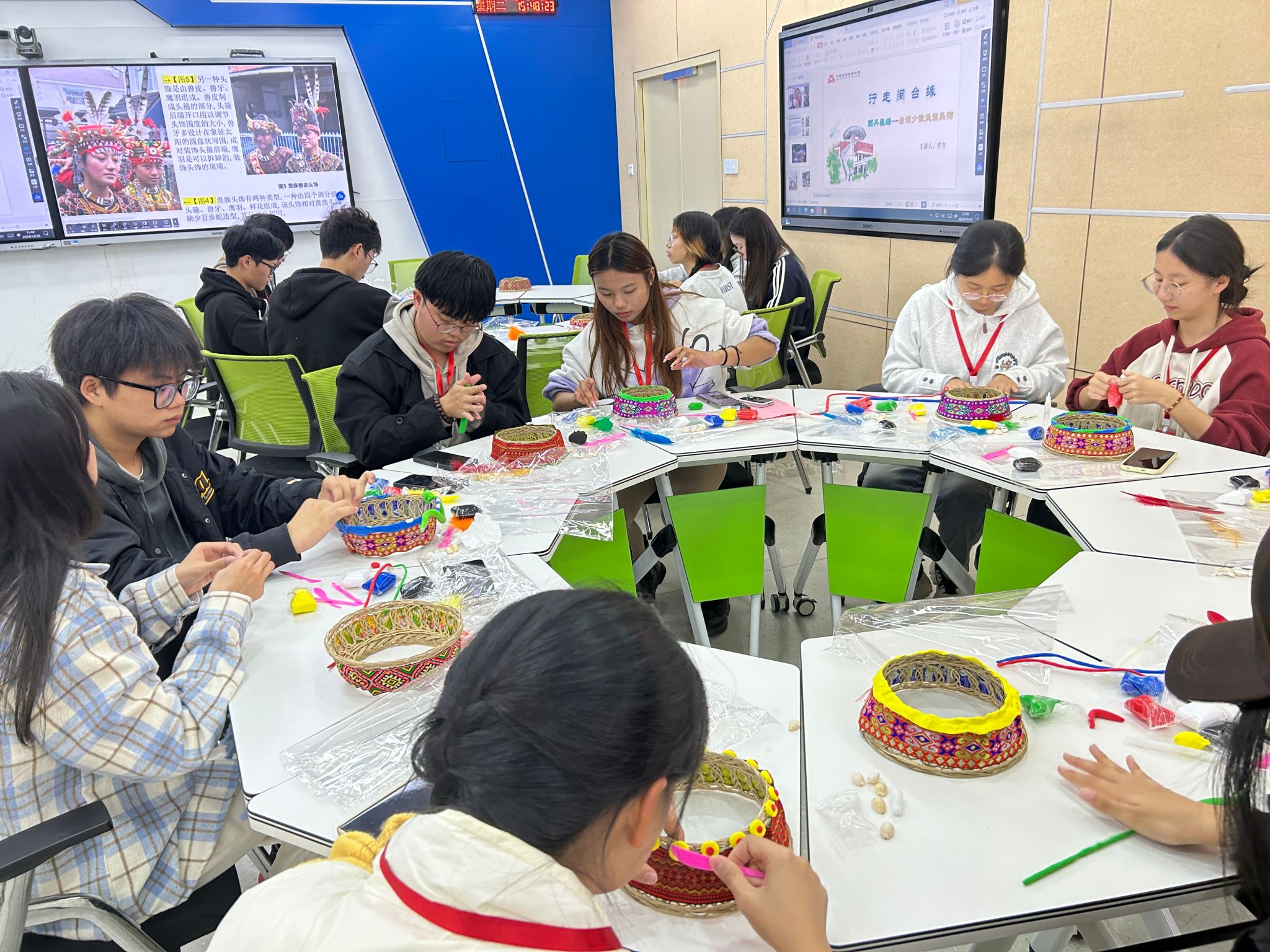 12月10日,在学院新教201智慧教室展开的“颜丹鬓绿 台湾少数民族头饰文化”手工活动中,同学们在博物馆工作人员的指导下,做出一顶顶充满台湾少数民族风情的帽子,同时,更加深入的学习了台湾少数民族的历史文化,一同聆听闽越文化的回响。