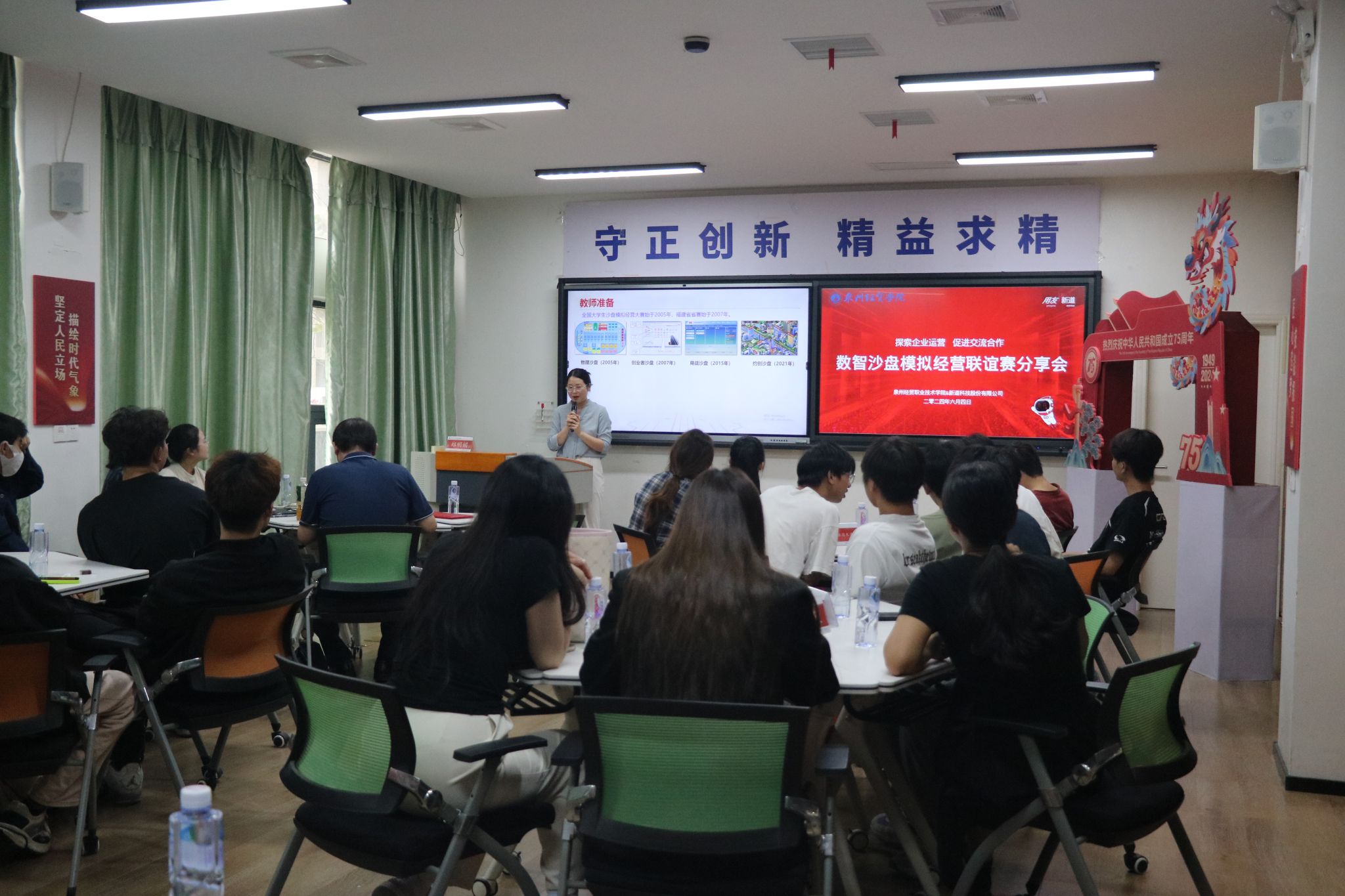 6月4日,各路参赛队伍齐聚我院教师发展中心,分享竞赛心得,互促提升技能。会审系副主任吴秋红在致辞中对参赛选手们的精彩表现给予了高度评价,并对未来数智化教育的发展提出了展望。参赛团队踊跃发言,复盘比赛得失。新道公司沙盘专家谢飞老师深剖比赛关键节点,为参赛选手们提供宝贵的经验借鉴。会审系郑明媚老师分享了指导沙盘的实践经验和创新做法。