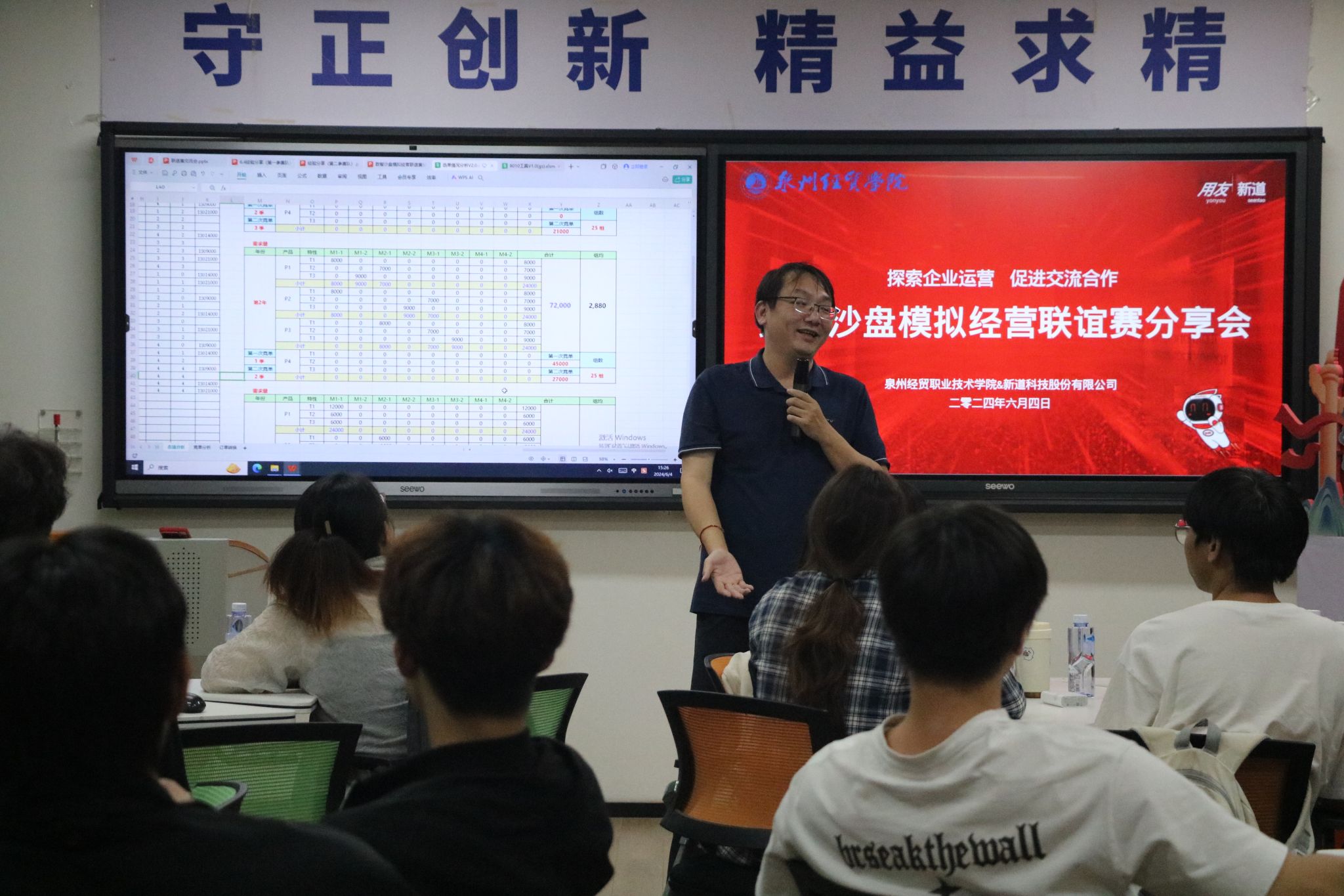围绕2024年职业教育活动周“一技在手,一生无忧”主题,我院会审系联合新道科技股份有限公司举办以“探索企业运营,促进交流合作”为主题的福建省高职院校数智沙盘模拟经营联谊赛。