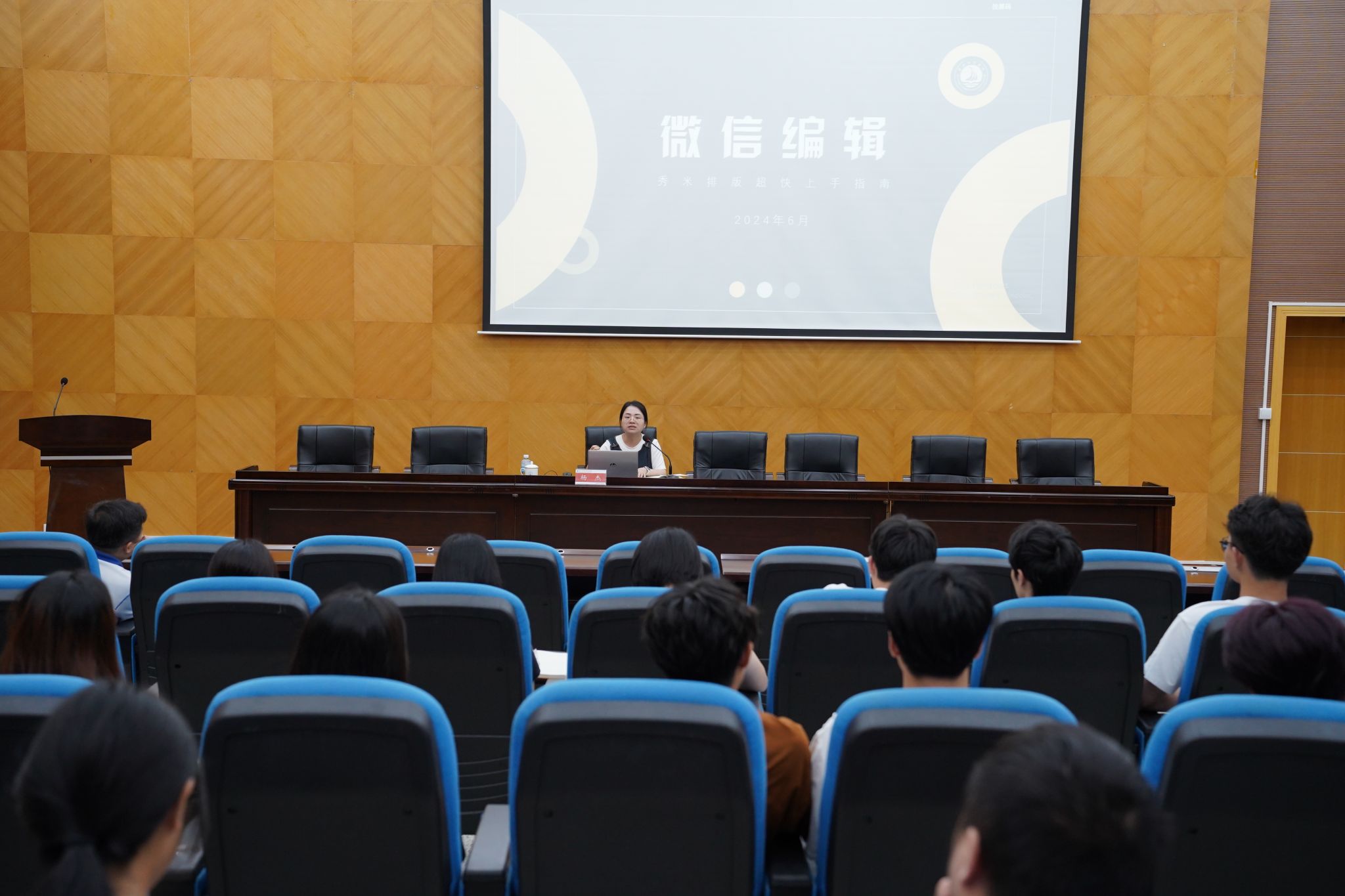 宣传部林仕晖在简单介绍学院官微情况后,围绕内容、排版两方面讲解微信公众号推文的写作和编辑技巧,希望大家能用真实、精准、不装的文字和图片,编写出有创意、有温度的推文。