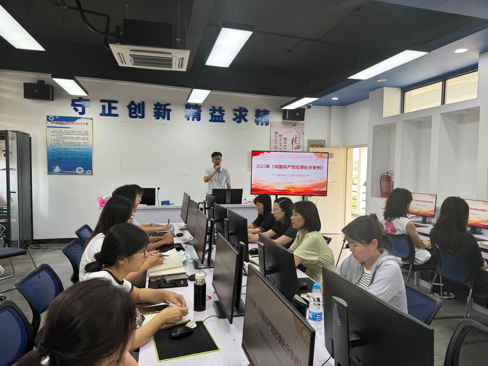 为深入学习贯彻习近平总书记关于党纪学习教育的重要讲话和重要指示精神,进一步强化师生党员学纪、知纪、明纪、守纪的底线思维,6月25日下午,学院党委委员、副院长花文苍在东教610为信息系全体师生党员讲授党纪学习教育专题党课。