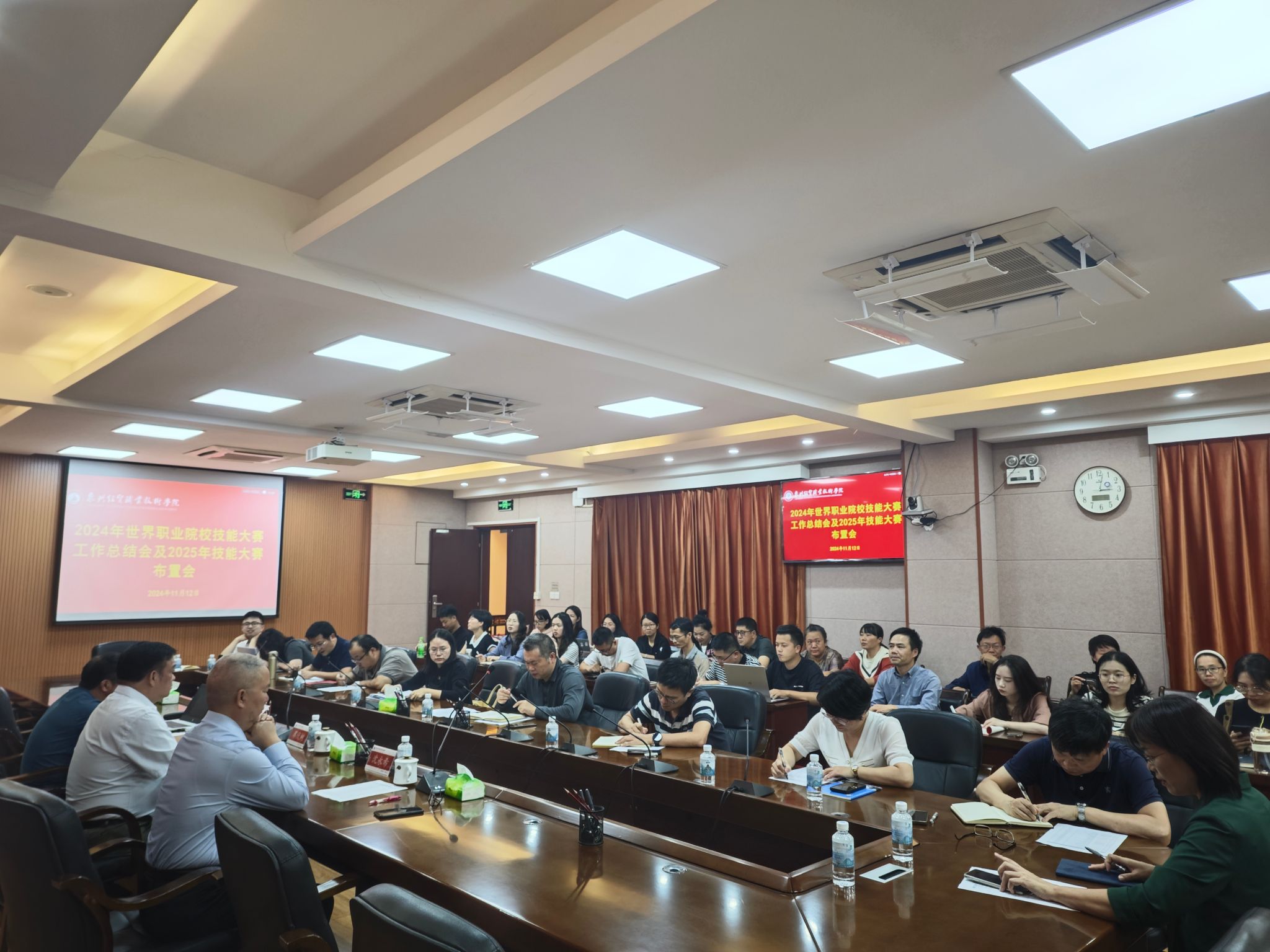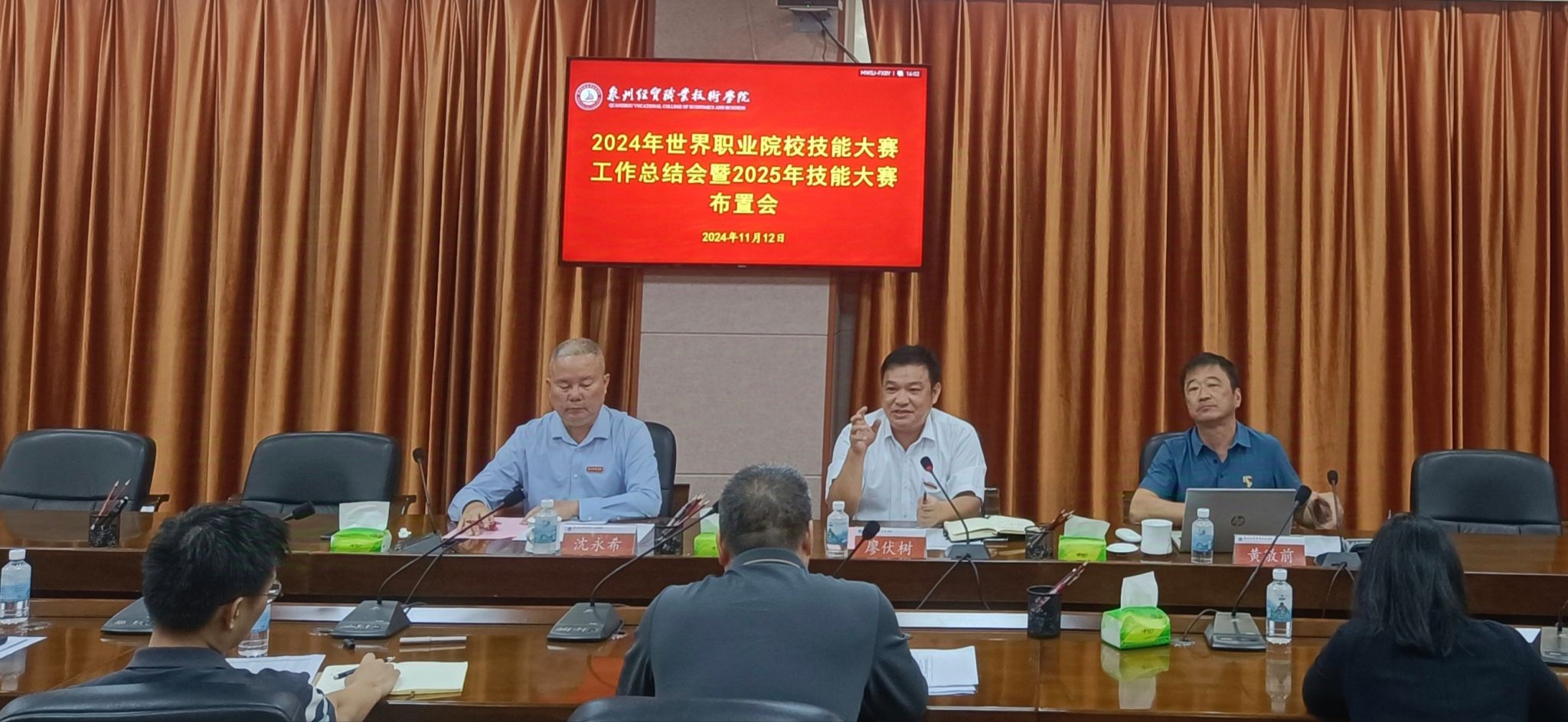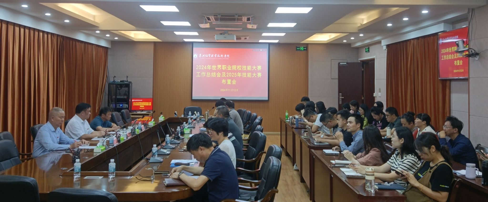 11月12日下午,学院召开2024年世界职业院校技能大赛工作总结会暨2025年技能大赛布置会,党委书记廖伏树,党委委员、副院长沈永希出席,教务处、各二级院系行政负责人,2024年世赛获奖团队指导教师、2025年各赛项指导教师参加会议。党委副书记、院长黄敬前主持会议。