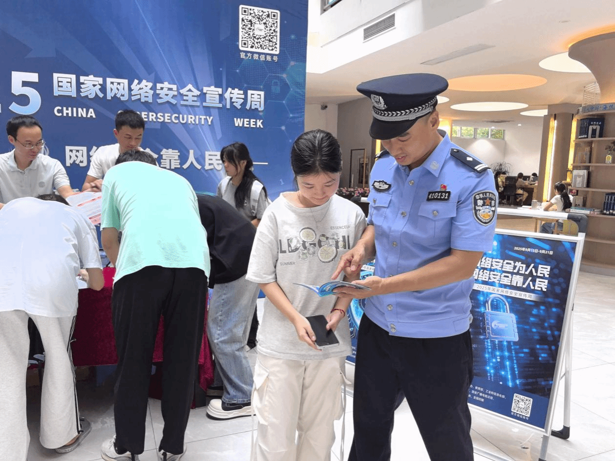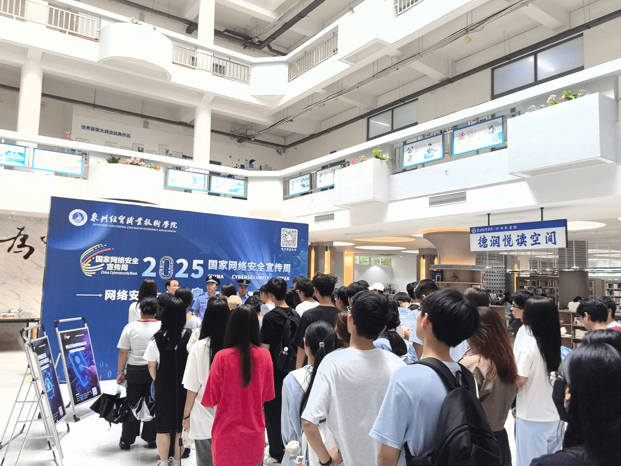 活动一:借助网络安全宣传周校园日活动的机会,联合鲤城网安大队、鲤城宣传部网信股,在学校图书馆开展“2025年网络安全宣传周”活动,向师生发放网络安全宣传手册及宣传物料。